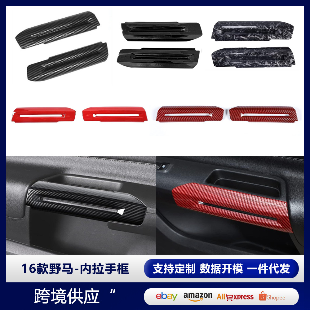 Cocok untuk Ford 16 kuda liar Mustang dimodifikasi dalam bingkai pegangan dekoratif serat karbon interior cerah strip patch