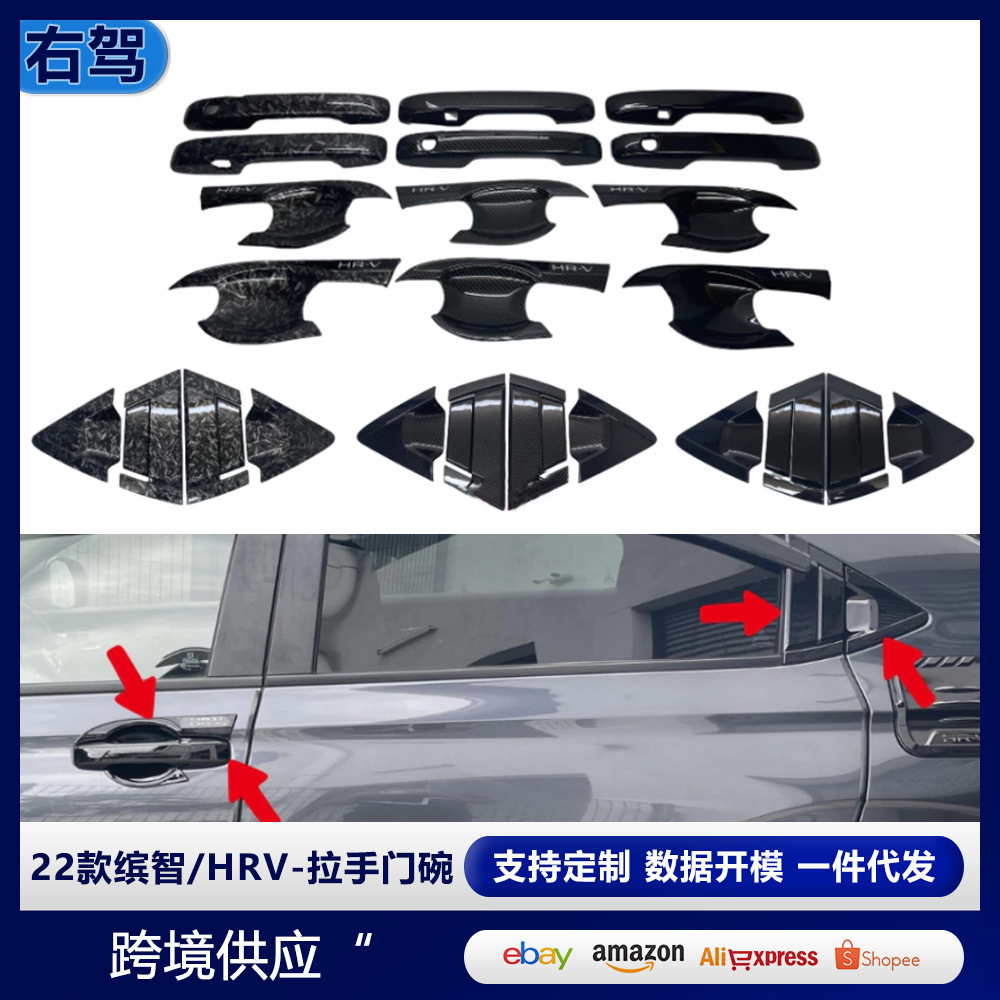 Berlaku untuk 22 Qizhi HR-V/HRV dimodifikasi kanan mengemudi depan dan belakang pegangan pintu dekorasi ABS pintu mangkuk payet