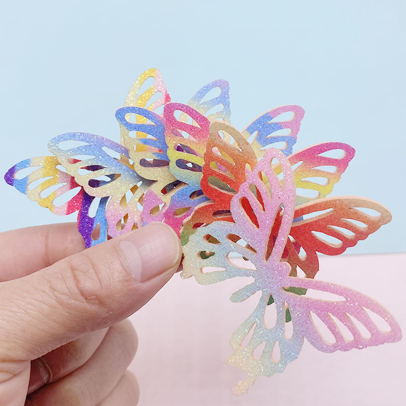 Laser pemotong bubuk emas sepatu kupu-kupu warna campuran dan tas topi DIY aksesori perhiasan pakaian aksesori dekoratif kupu-kupu