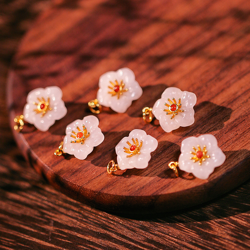 Hetian jade bunga prem Aksesori drop kecil diy buatan tangan spacer manik-manik konektor 925 perak emas berlapis Aksesori bertatah