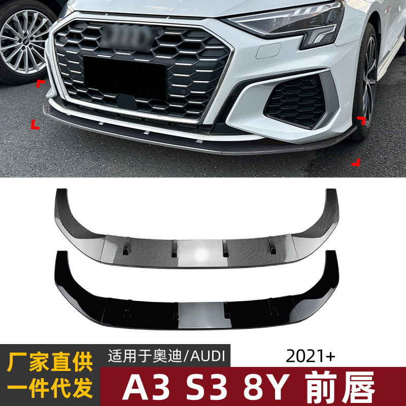 Cocok untuk Audi A3 8Y S3 2021 + bumper depan bibir depan sekop dekorasi eksterior modifikasi