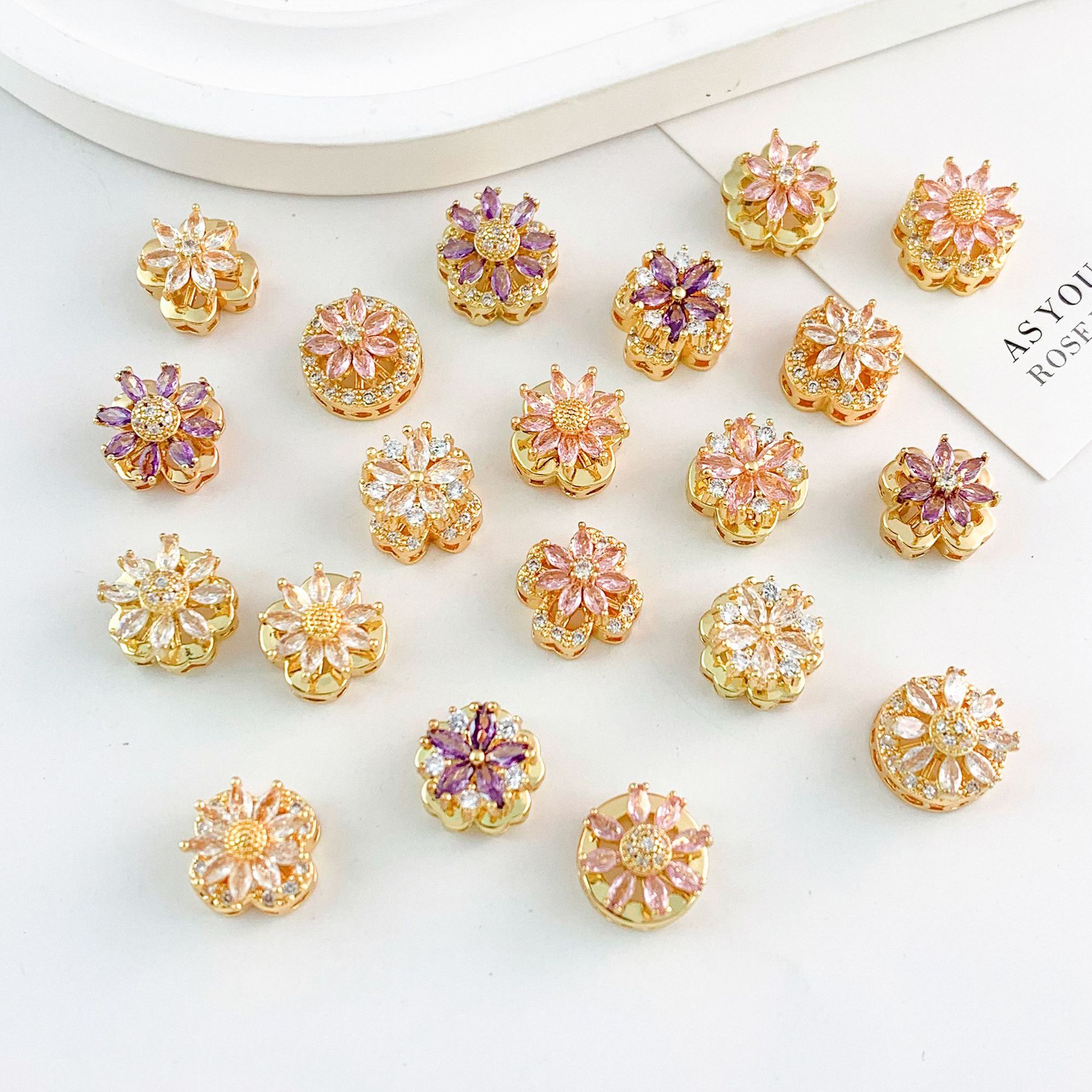 Manik-manik 18kK Perhiasan Bunga Berputar Warna Emas Asli Aksesoris Perhiasan DIY Tidak Luntur Warna Desain Modis