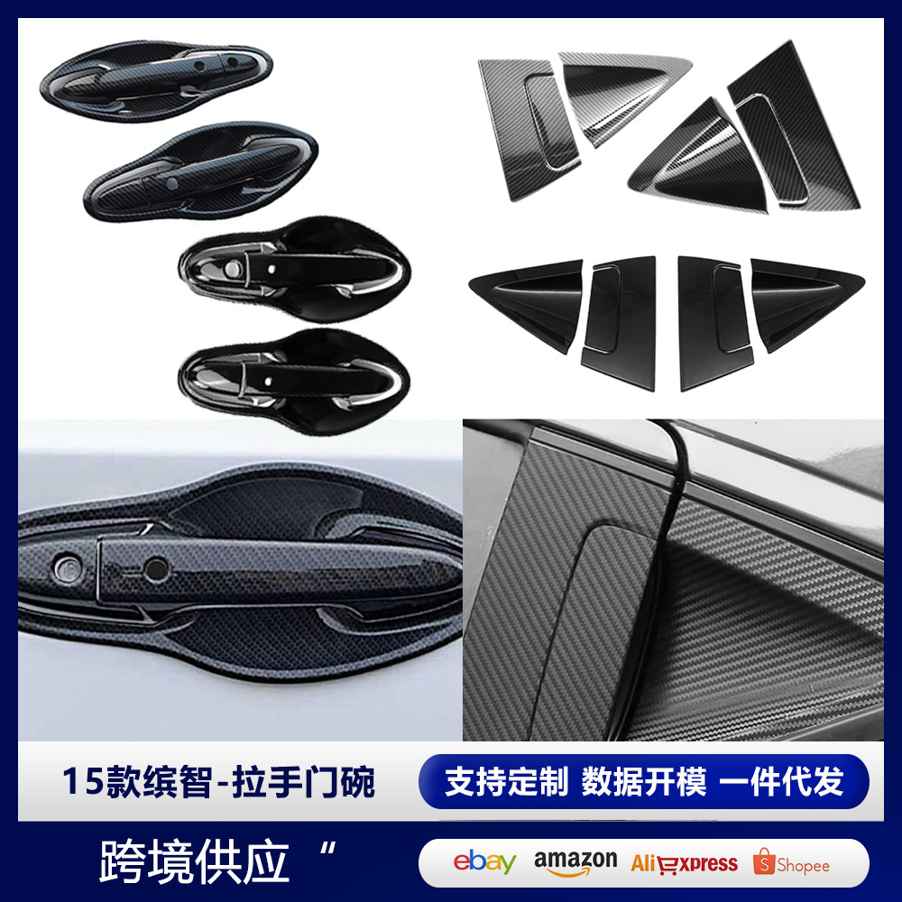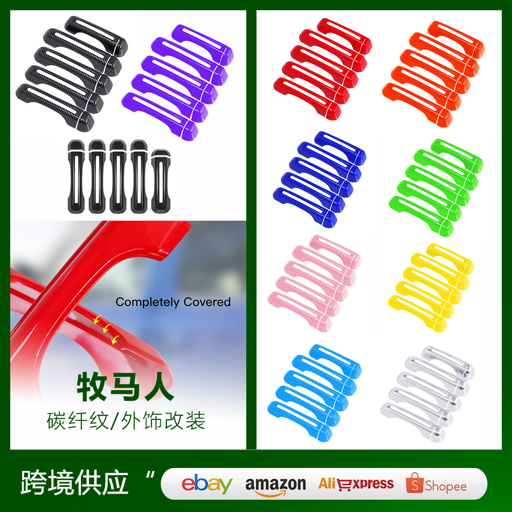 Berlaku untuk 18 gembala JL dimodifikasi pegangan luar stiker dekorasi pola serat karbon gagang pintu hollow penutup pelindung