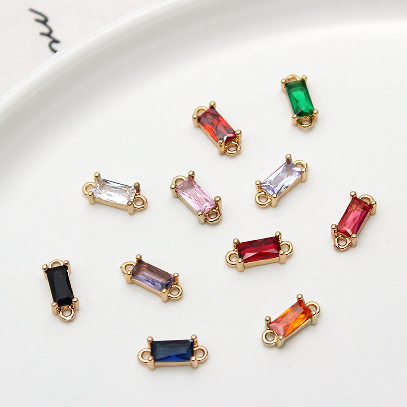 Diy aksesoris perhiasan warna berlian gantungan ganda persegi panjang liontin gelang anting bahan koneksi kalung