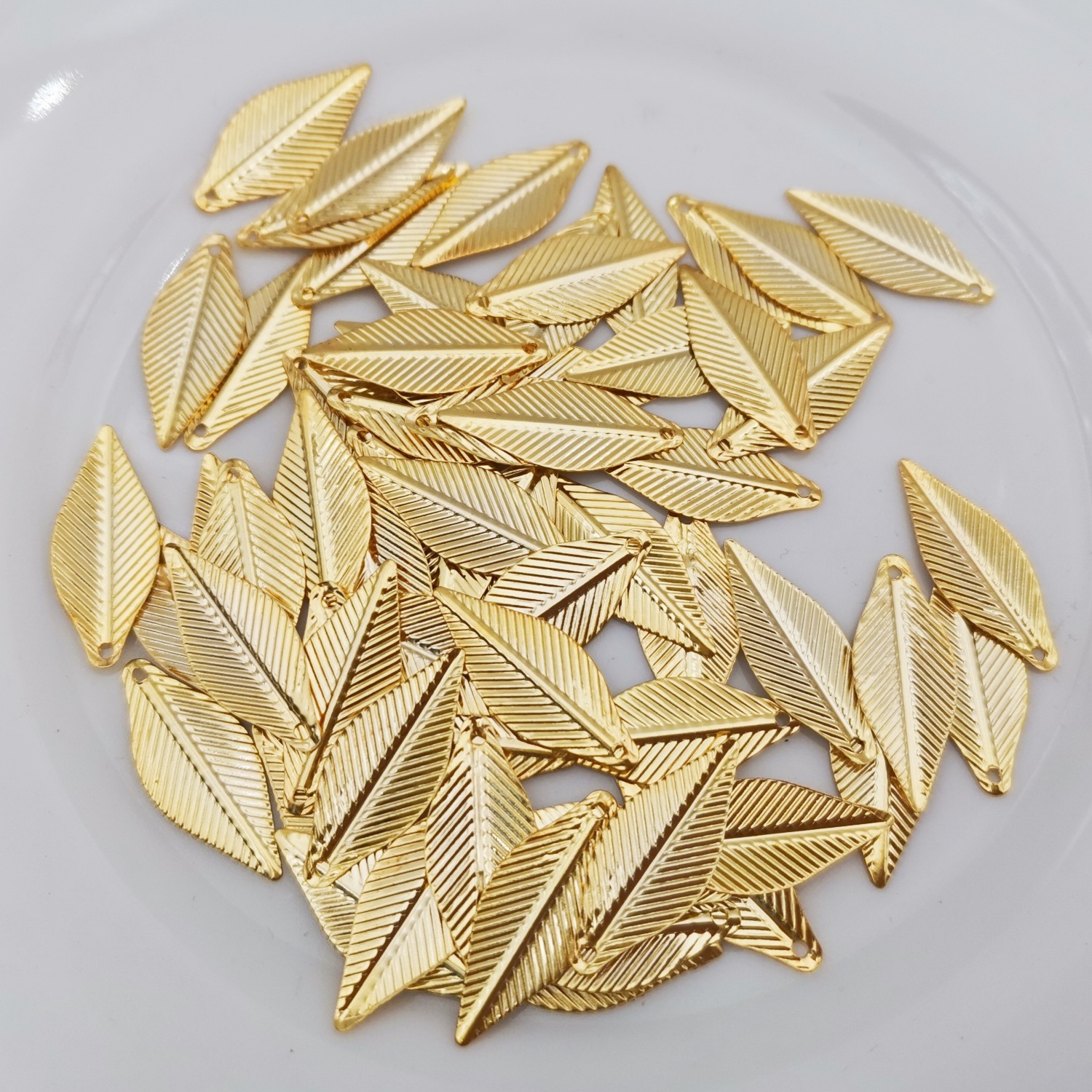 Aksesori buatan tangan diy antik 9*23mm daun logam bulu padat daun emas Aksesori jimat kepingan bunga