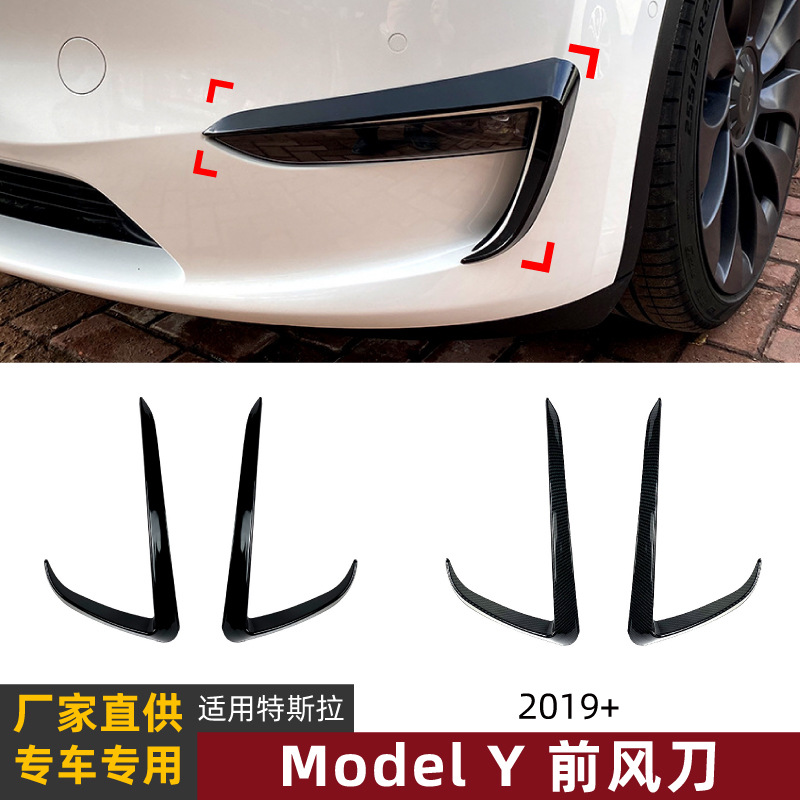 Berlaku untuk Tesla Model Y pisau udara bumper depan pisau udara depan dekorasi eksterior spoiler modifikasi stiker mobil