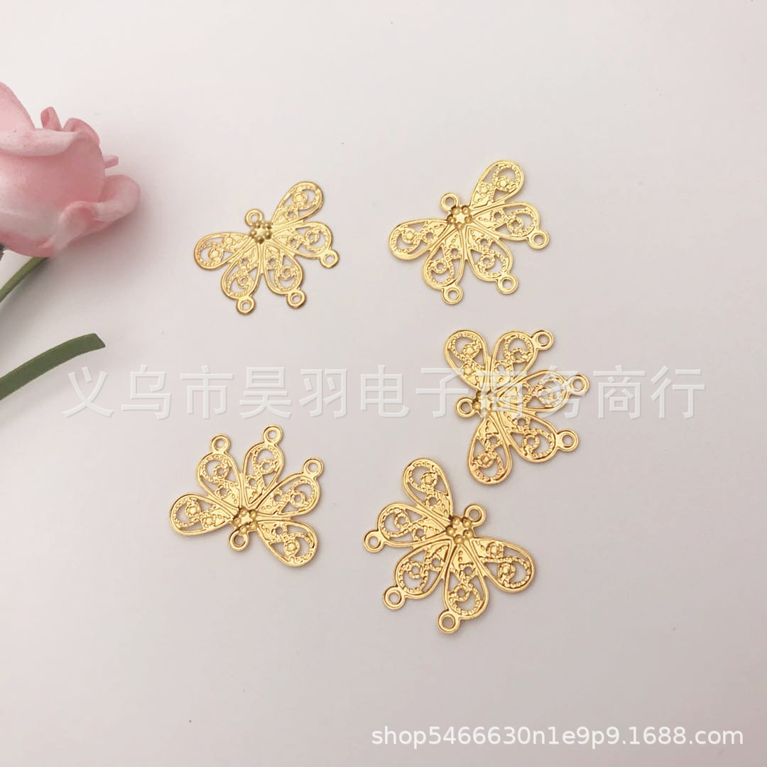 Aksesoris perhiasan DIY 22mm tiga lubang liontin kupu-kupu logam langkah goyang rumbai hiasan kepala bahan pabrik pasokan langsung