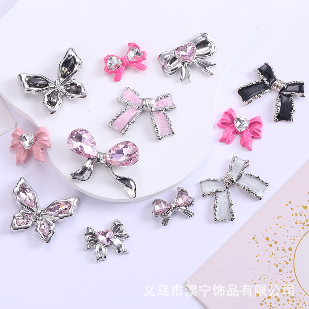 Aksesori rambut berlian imitasi busur logam campuran aksesori rambut dekoratif Sepuh elektrik merah muda berlian kilat diy produk setengah jadi buatan tangan grosir