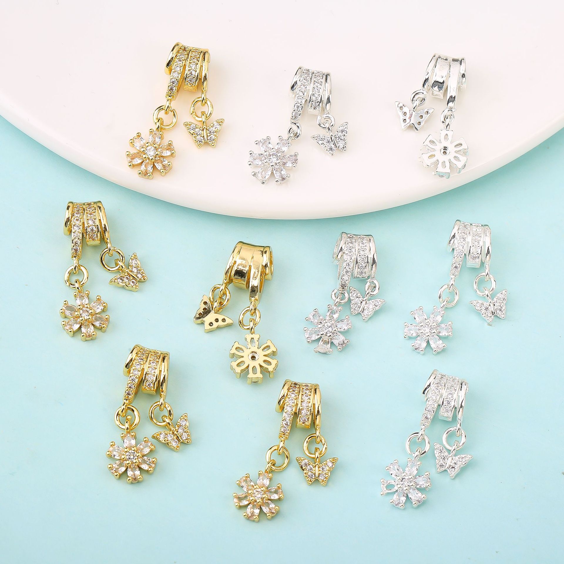 Liontin Batu Zirkon Kupu-kupu Rumbai Bunga Plum Liontin Manik-Manik Berlapis Tembaga Tembaga Berlapis 18K Aksesori Bahan Manik-manik DIY