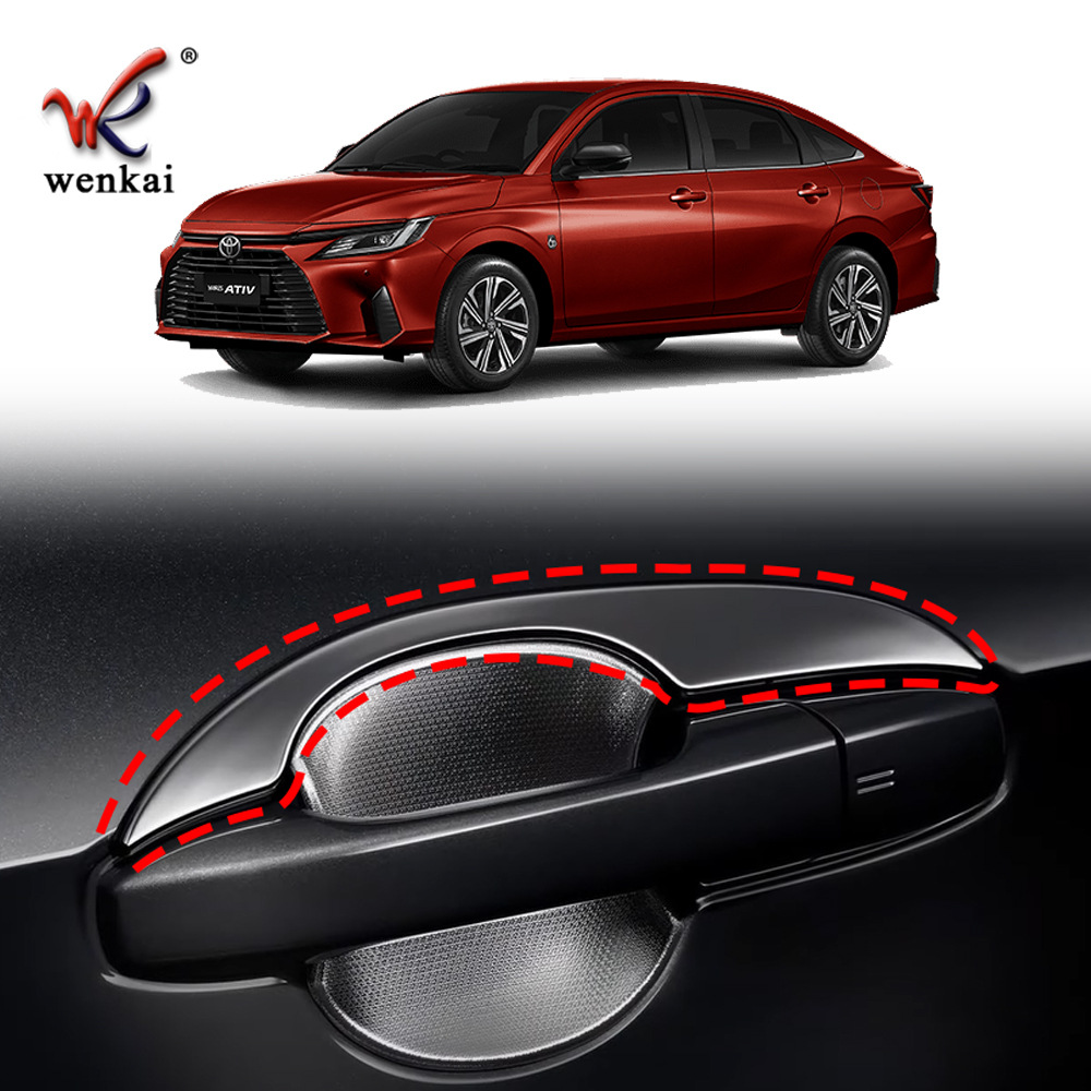 Cocok untuk 23 Yaris Ativ dimodifikasi pintu mobil pegangan elektroplating strip dekoratif VIOS pegangan khusus payet