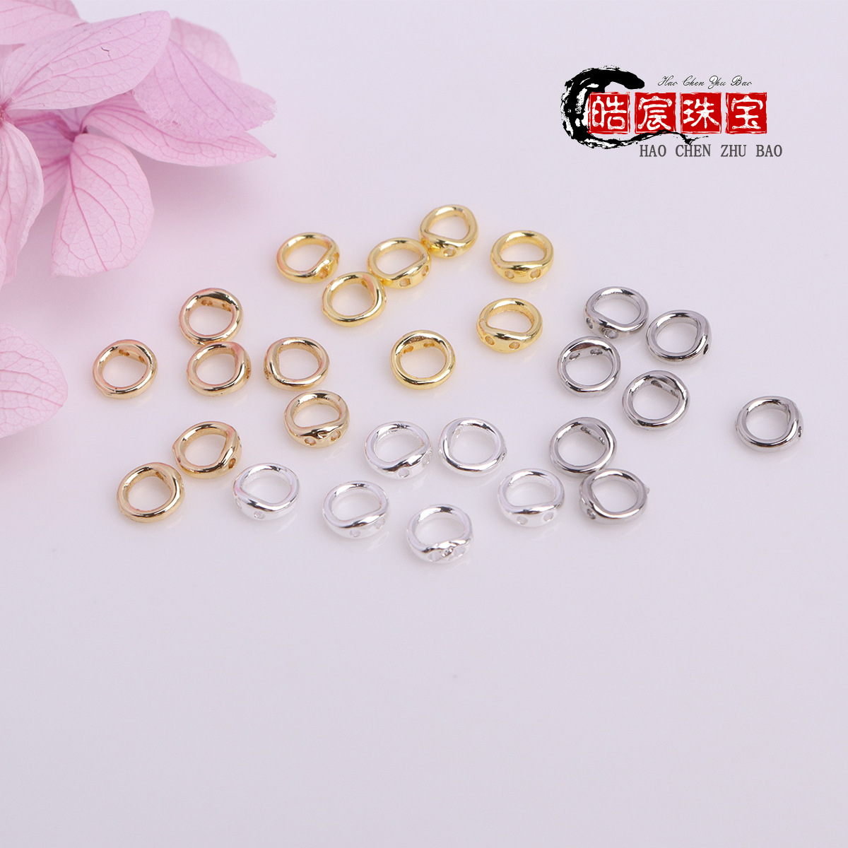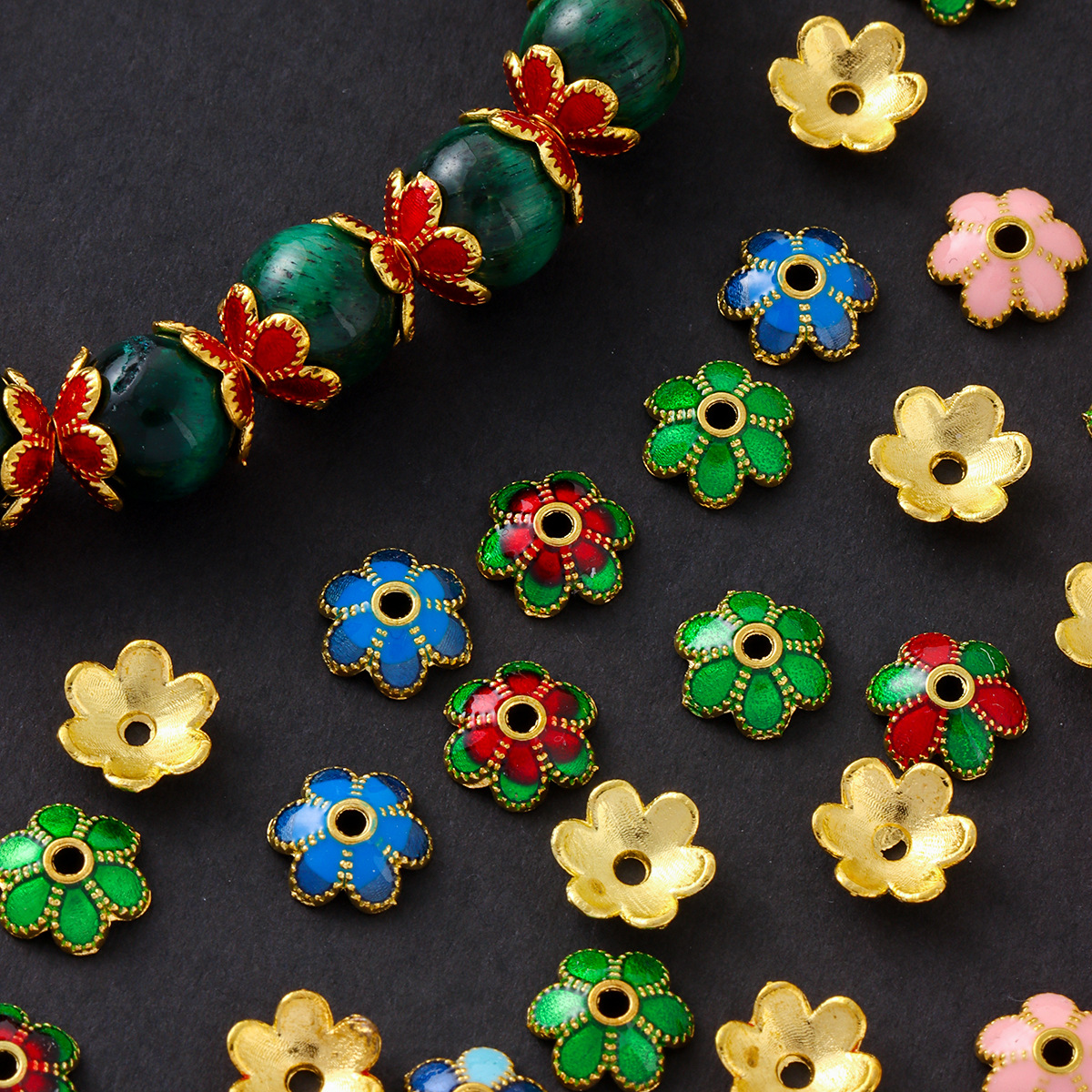 Yiwu aksesoris paduan DIY aksesoris perhiasan tetesan titik minyak pemegang bunga tiga warna bunga DIY aksesoris buatan tangan lucu ceruk