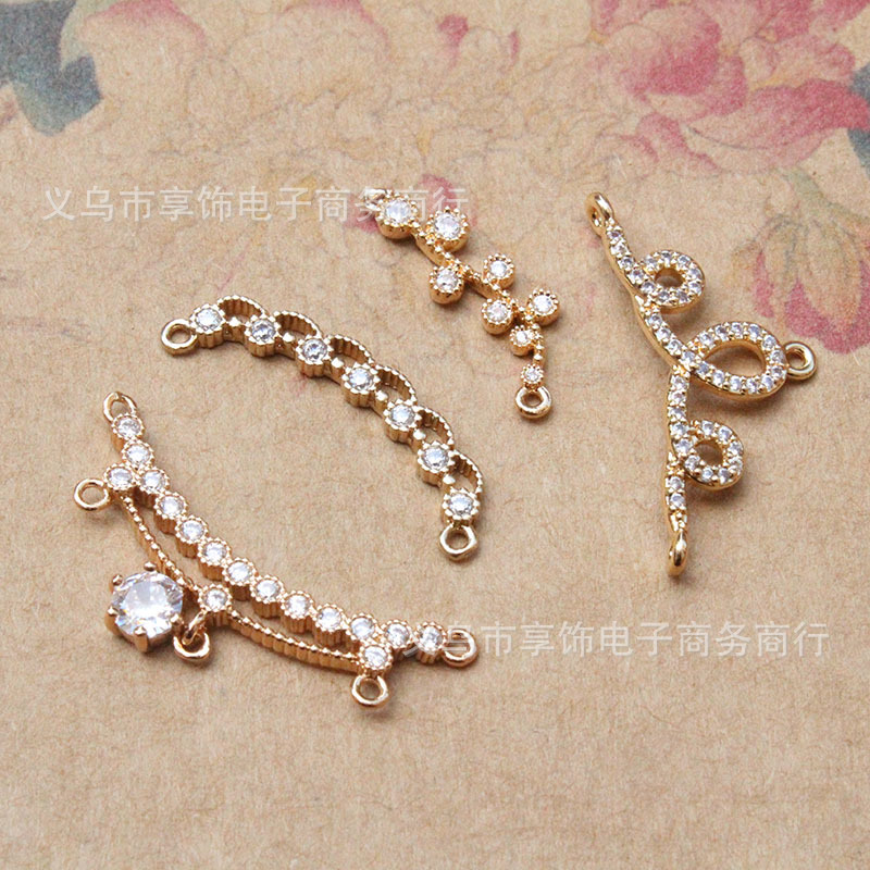 Aksesori zirkon bertatahkan mikro DIY beberapa liontin cincin ganda Siku melengkung kalung penahan warna jepit rambut bahan liontin rumbai