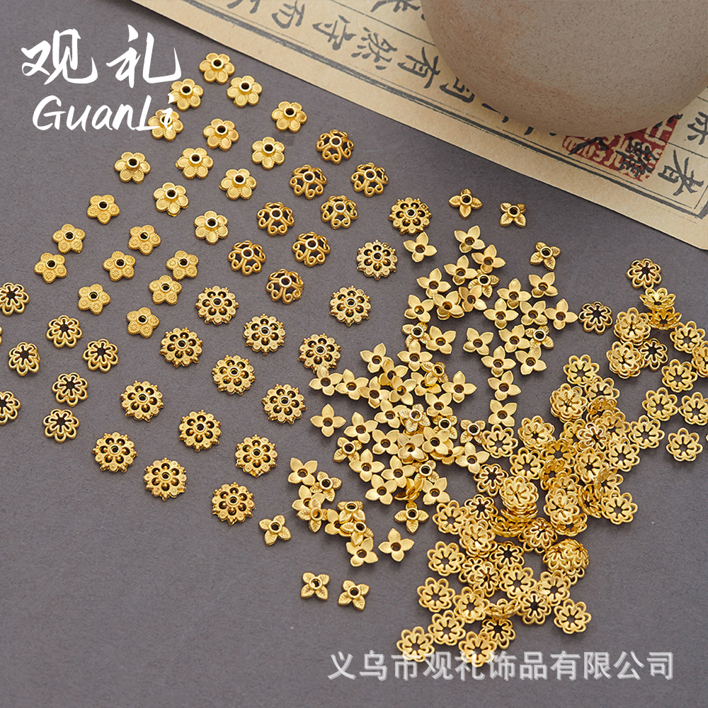 8mm dipersonalisasi tempat bunga lapisan ganda spacer vintage Xizang telinga perak manik topi rumbai topi diy anting manik-manik bawah Aksesori dukungan