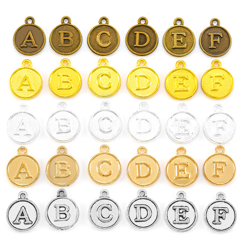 26 huruf setiap 1 set diy paduan liontin Aksesori bahasa Inggris huruf sikat dua sisi paduan drop minyak liontin