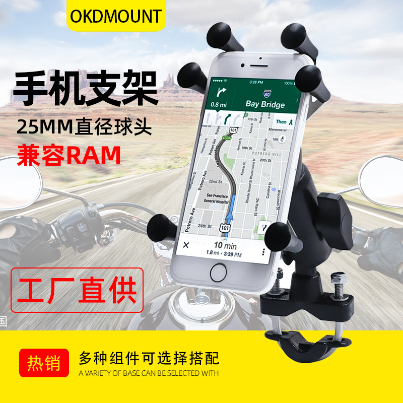 Pasokan langsung pabrik motor sepeda listrik braket ponsel luar ruangan braket universal kepala bola besar batang penghubung lengan penjepit