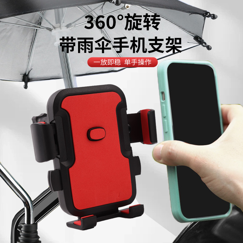 Pemegang ponsel mobil listrik, grosir paduan aluminium sepeda motor sepeda braket makanan ringan dengan payung