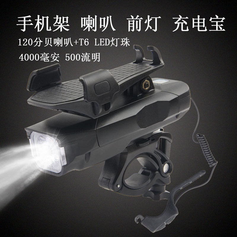 Lampu depan sepeda, braket penyergapan sepeda, lampu depan Empat dalam satu, klakson lampu pemegang ponsel pengisi daya