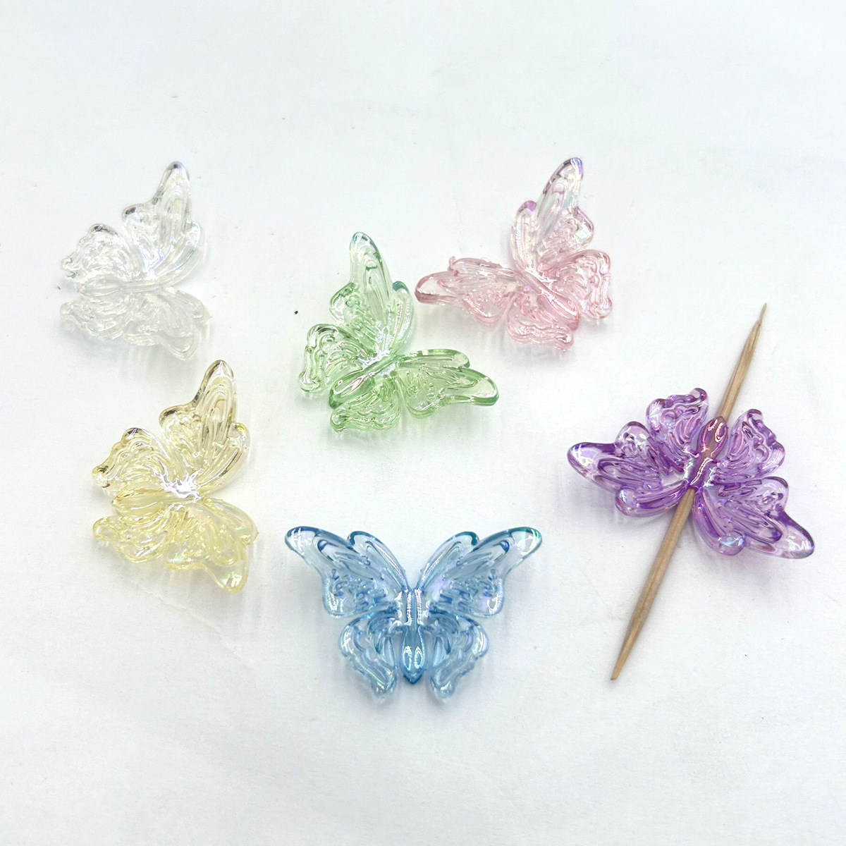 33*22mm akrilik berlapis warna transparan menyebar sayap kupu-kupu lubang vertikal tiga dimensi kupu-kupu DIY aksesoris perhiasan anting