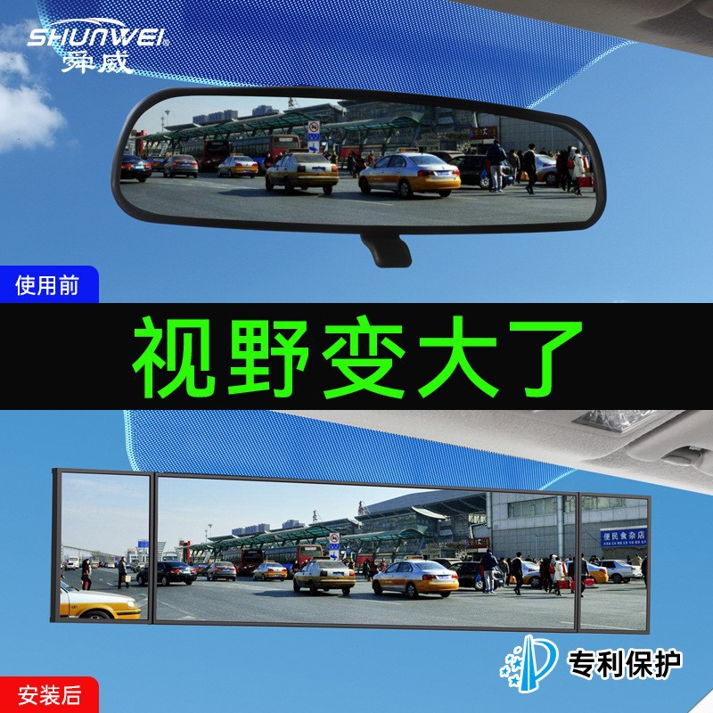 Shunwei kaca spion tiga lipat lengkung, perlengkapan mobil kaca spion lebar mundur SD-2411