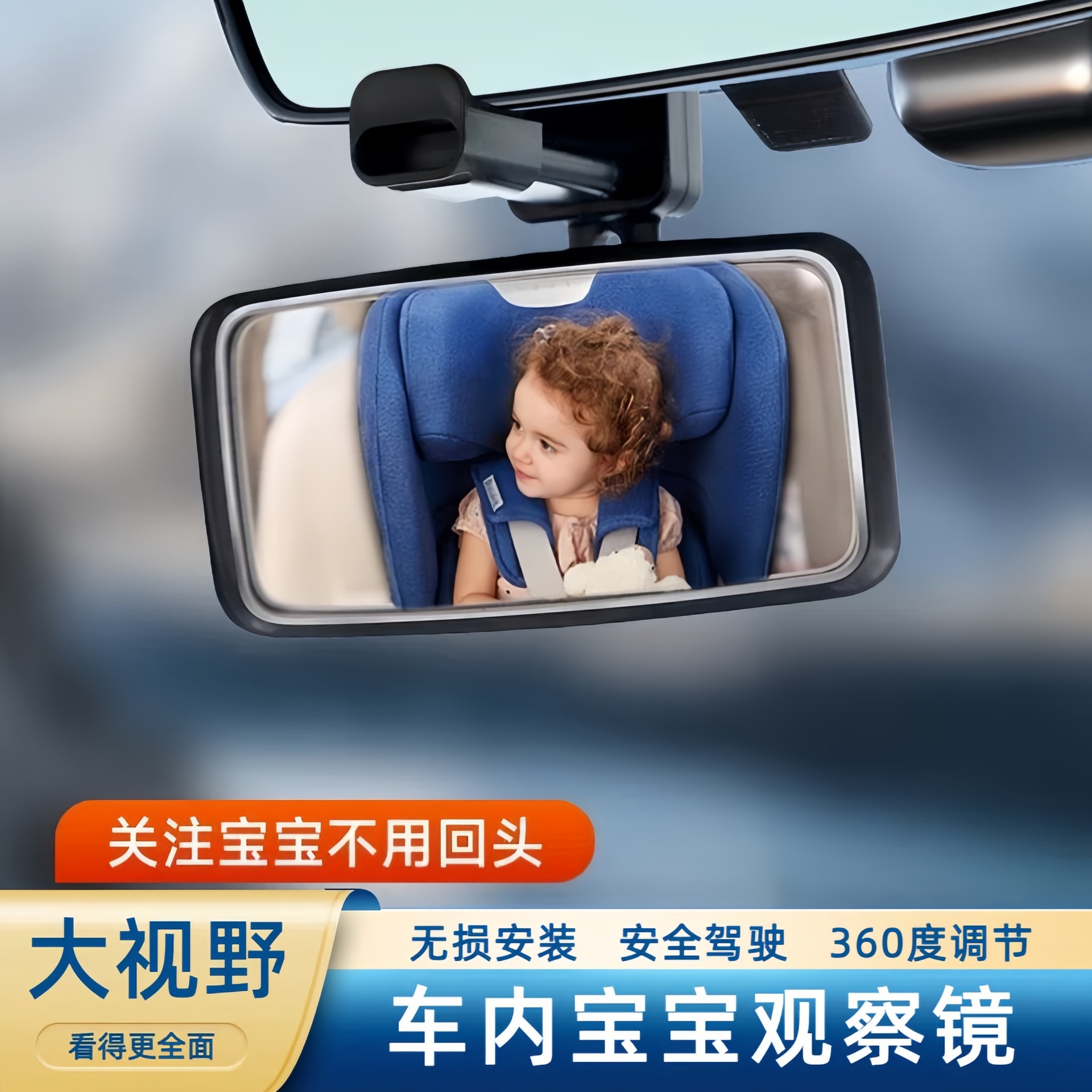 Cermin observasi bayi mobil, kursi keselamatan anak-anak kaca spion jepret multi-sudut dapat disesuaikan reflektor mundur