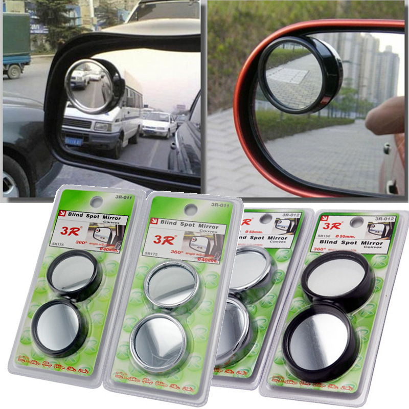 Kaca spion mobil, 3R, cermin bulat kecil, 360 derajat, dapat disesuaikan, kaca spion depan, titik buta, cermin roda depan tambahan reflektif