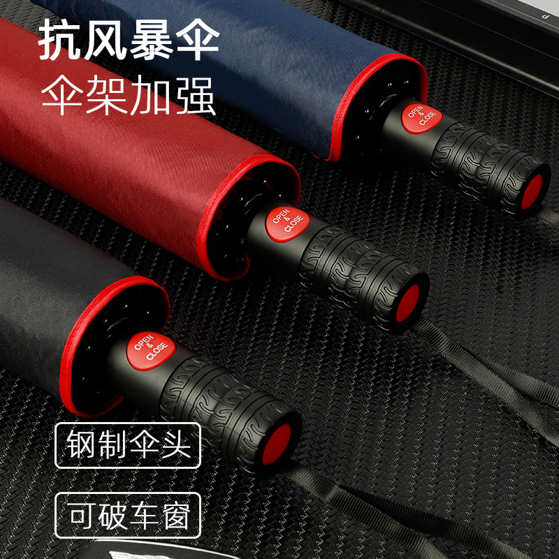 Payung mobil ban kerangka merah 23 inci payung pelindung matahari jendela rusak payung cetak iklan tiga lipat payung otomatis