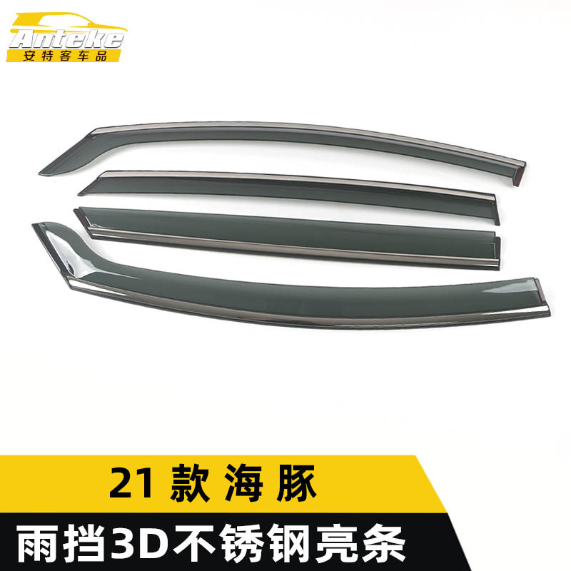 Cocok untuk 21 lumba-lumba pelindung hujan 3D baja tahan karat strip terang lumba-lumba kerai stiker hias Aksesori Mobil