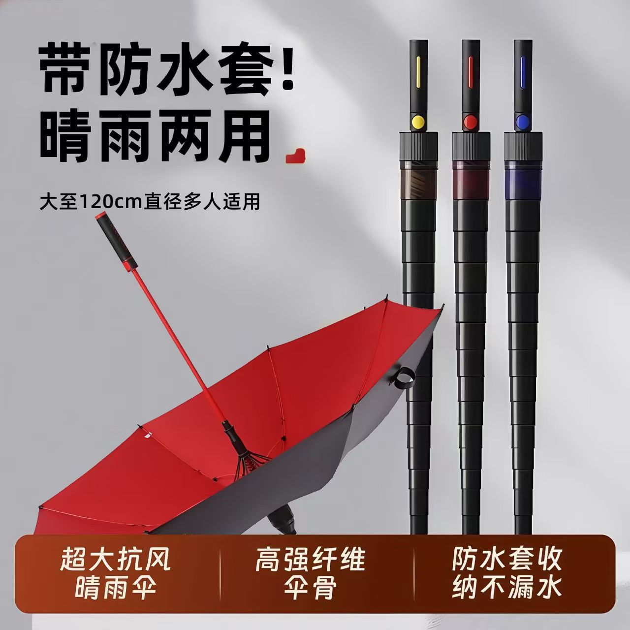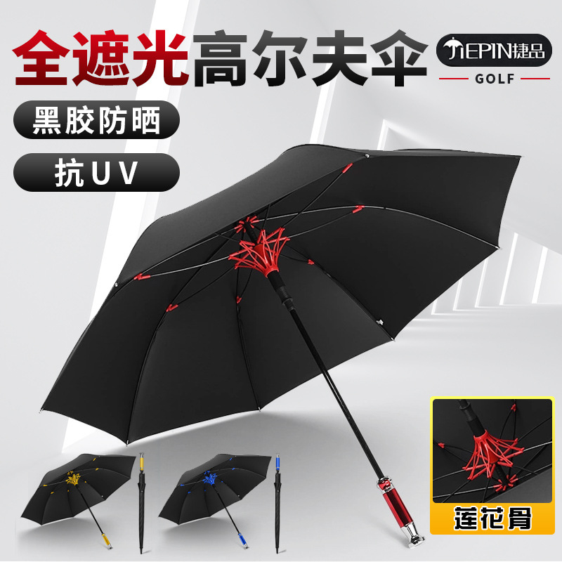 Payung pelindung matahari pegangan panjang, payung hitam karet perlindungan matahari serat penuh tulang Lotus besar tahan angin logo dapat dicetak