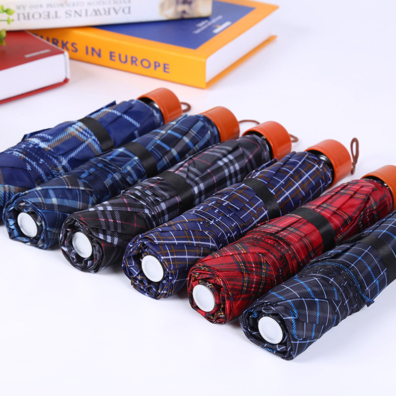 Payung matahari pria dan wanita, payung lipat portabel dua kegunaan perlindungan UV kotak-kotak sederhana kreatif untuk lelaki dan perempuan