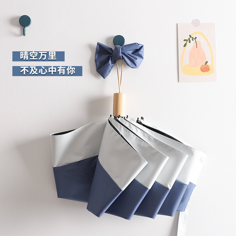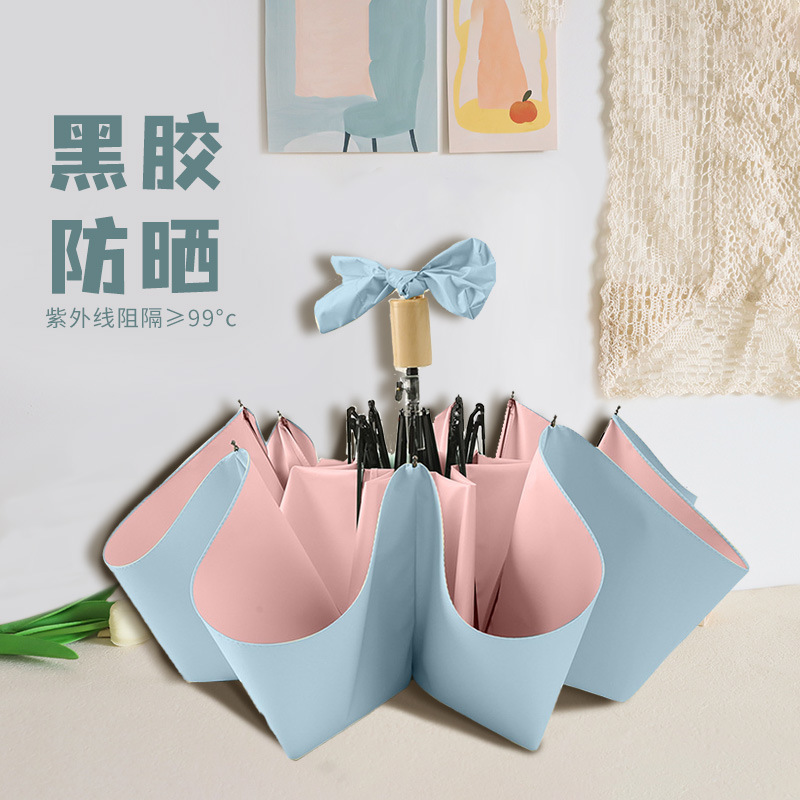 8-tulang lem hitam tiga lipat perlindungan matahari payung perlindungan UV payung matahari perempuan lipat hujan penggunaan ganda payung hadiah
