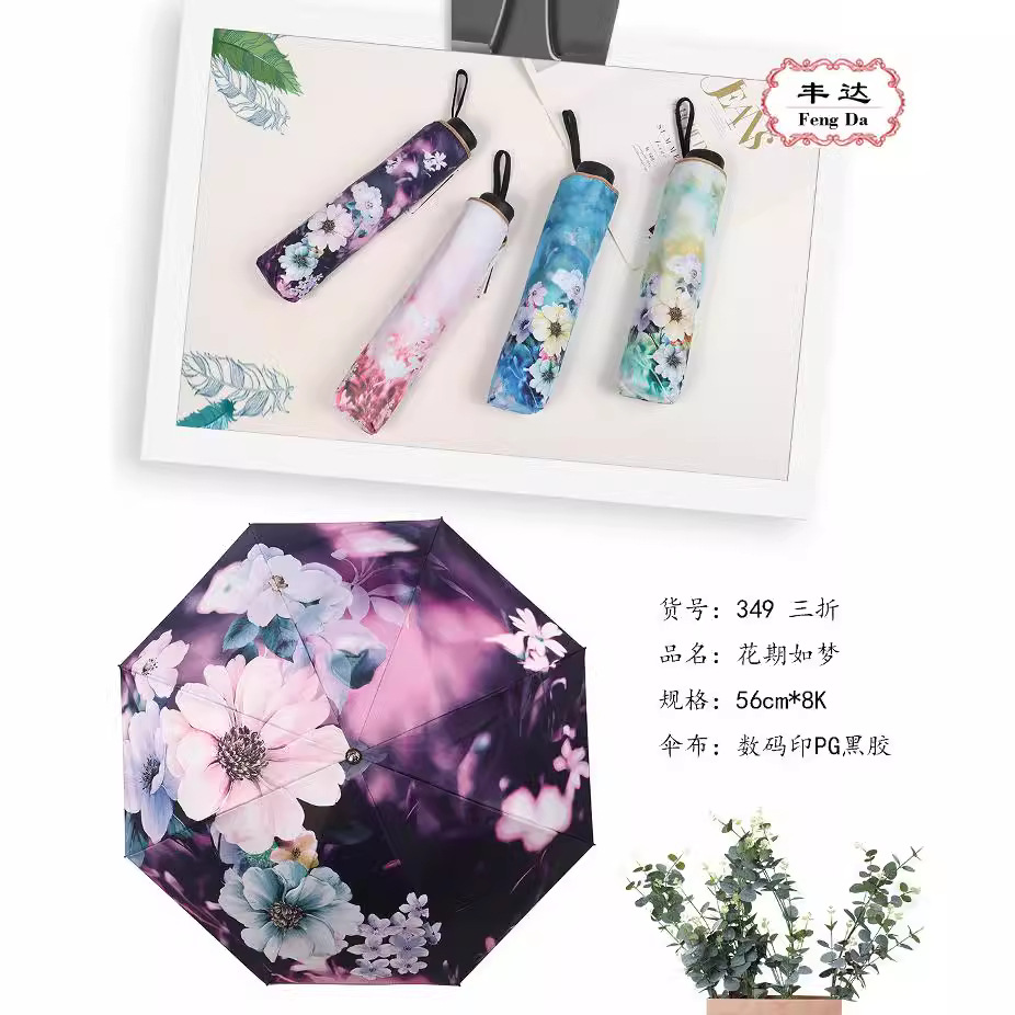 Paradise Umbrella barang asli shading penuh lem hitam perlindungan matahari UV payung perlindungan tri-fold payung 33736E pemukul hati