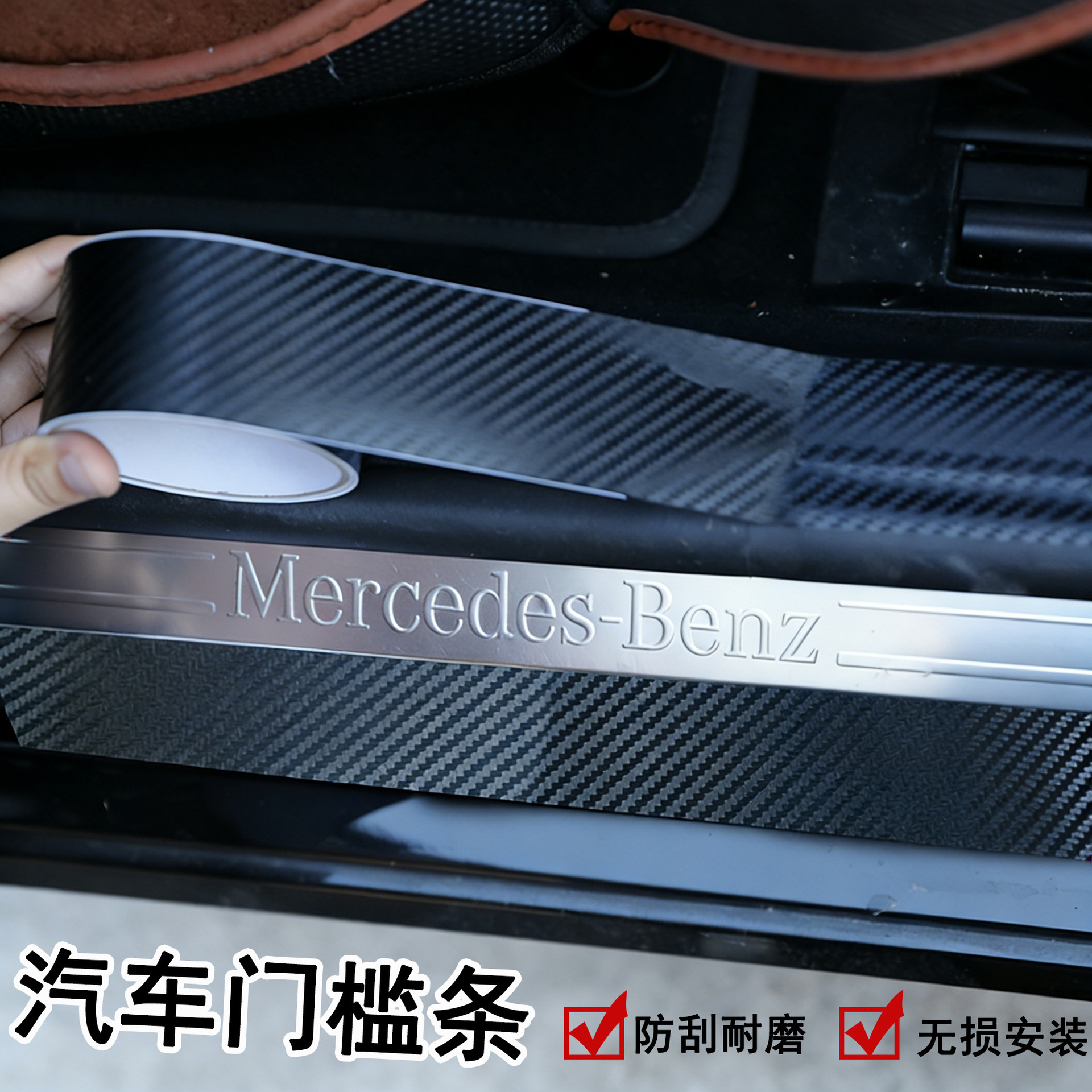 Film Pengubah Warna Anti Tabrakan Pintu Mobil 3D5D6D Pola Serat Karbon 30CM Stiker Strip Pelindung Pita Dimodifikasi Pedal Selamat Datang
