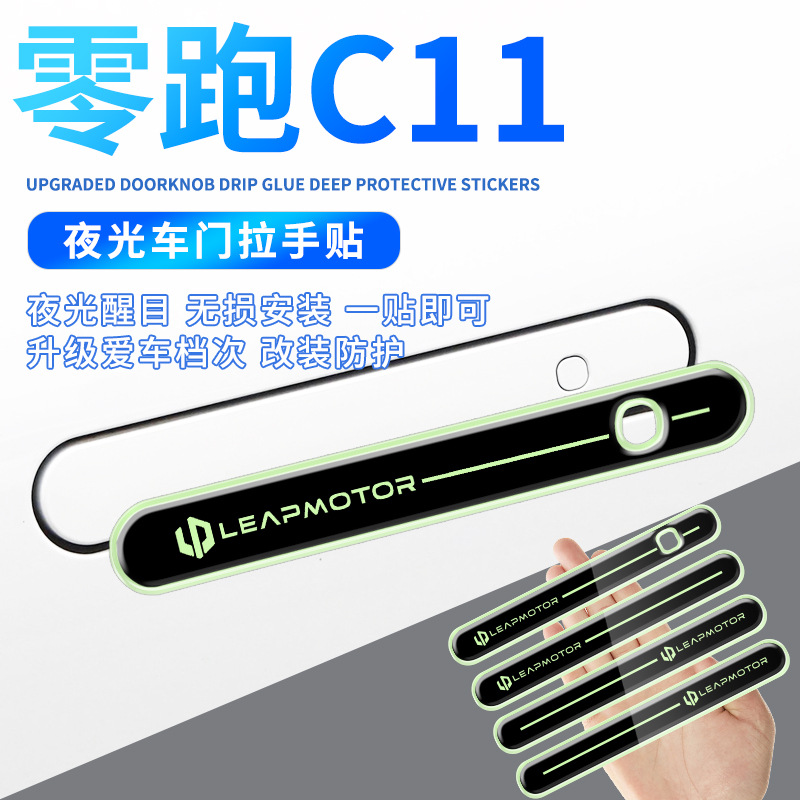 Cocok untuk zero running C11 stiker pintu mobil, stiker bercahaya, lapisan pelindung gagang pintu, bahan epoksi transparan, stiker bodi mobil modifikasi