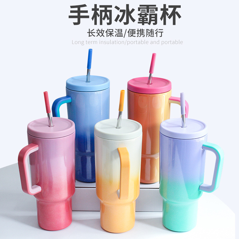 Vakum Lintas Batas 304 Gelas Es Stainless Steel Generasi Ketiga 40oz Portabel Sedotan Gelas Olahraga Isolasi Mobil