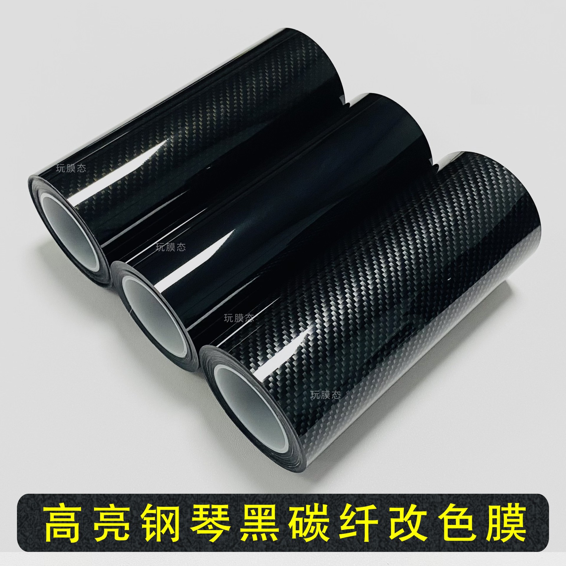Film perubahan warna mobil 3D serat karbon PET piano strip hitam terang hitam interior stiker jaring tengah