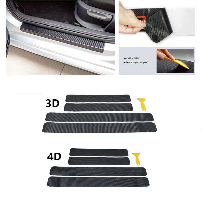 Stiker serat karbon ambang pintu mobil Universal stiker pelindung anti-tendangan strip pelindung stiker mobil 3D4D film serat karbon
