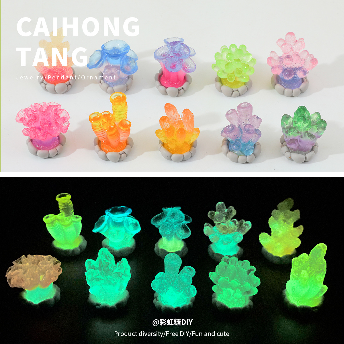 彩色系自然造景仿真夜光海洋植物造型盆栽 DIY立体植物盆栽摆件