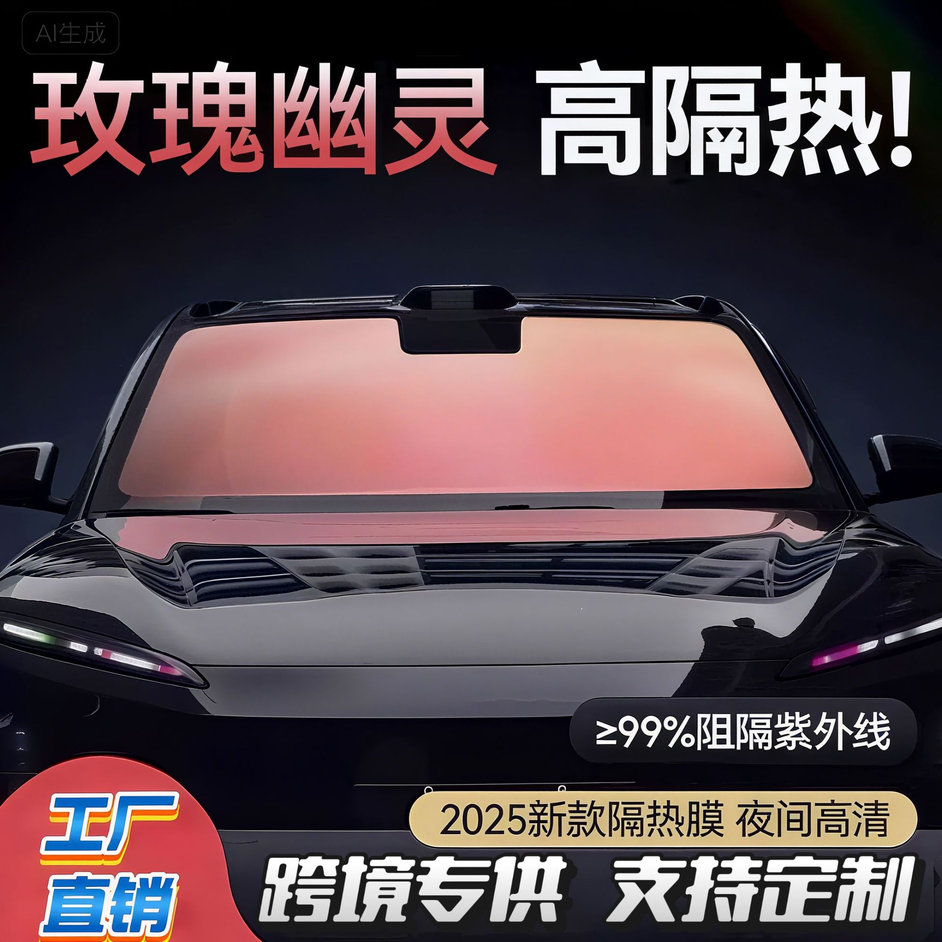 Film pelindung kaca depan mobil warna ungu imperial ghost rose, grosir dari pabrik, film pelindung matahari, film insulasi panas, film solar mobil