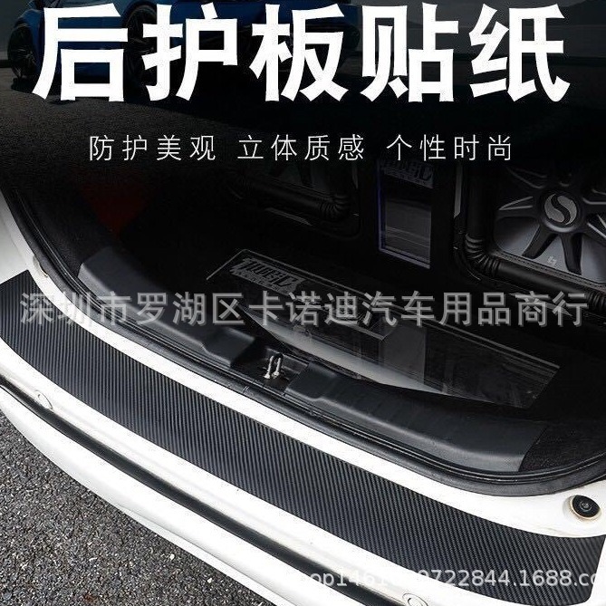 Stiker ambang pintu mobil antigores, stiker pedal bagasi Universal, stiker serat karbon pelindung belakang antigores