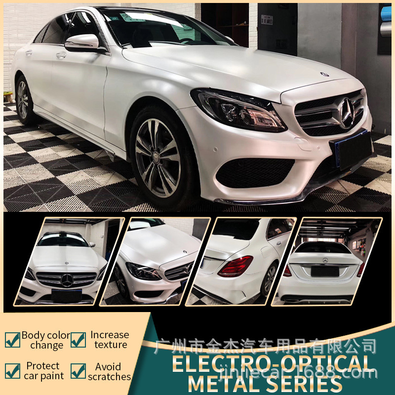 Film berubah warna mobil, film modifikasi seluruh bodi kendaraan matte plating warna perak, stiker berubah elektro optik logam abu-abu