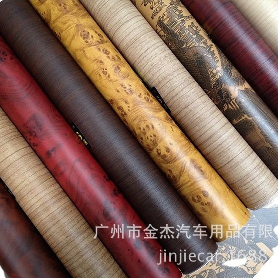 Stiker interior mobil lintas batas sisanglai furnitur biji-bijian kayu persik mengkilap pabrik grosir stiker motif biji-bijian kayu