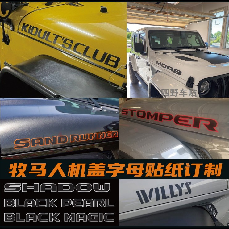 Stiker JK Wrangler yang Cocok untuk Penutup Mesin JEEP Stiker Mobil Reflektif Huruf Bahasa Inggris Film Modifikasi Tubuh MOAB