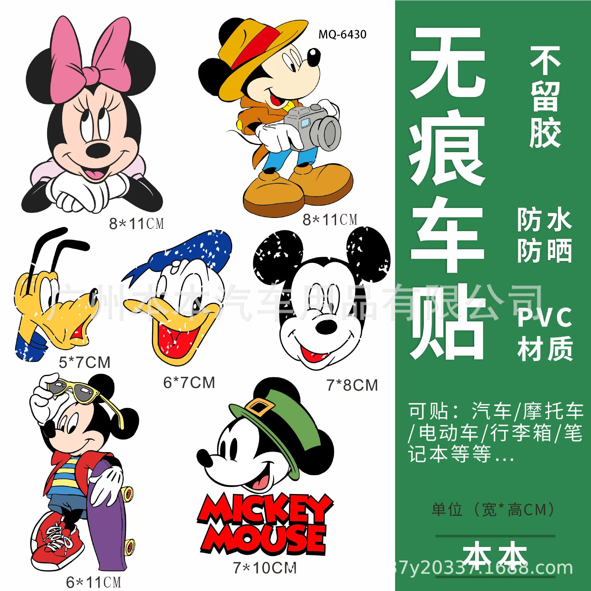 Mickey Mouse stiker mobil elektrik, stiker kartun lucu helm mobil listrik kotak penyimpanan bagasi notebook dekorasi tahan air