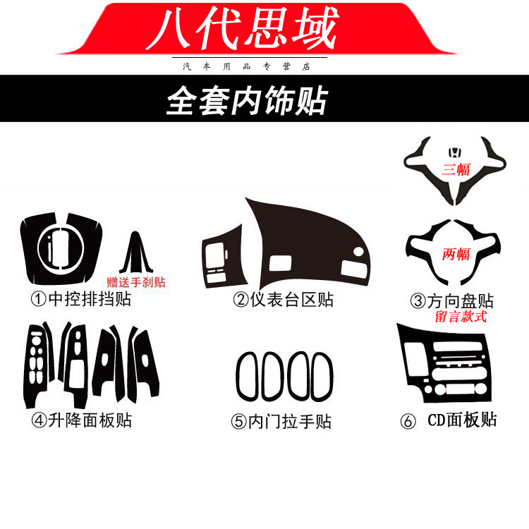 Berlaku untuk 06-11 tua delapan generasi Civic Siming stiker interior mobil warna berubah film serat karbon central control gear