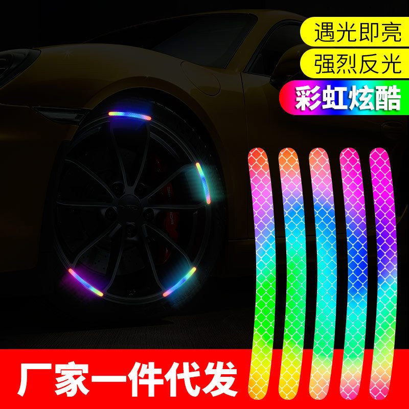 Stiker reflektif pelangi mobil, stiker reflektif tinggi, stiker roda mobil elektrik, dekorasi Turtle King, stiker reflektif
