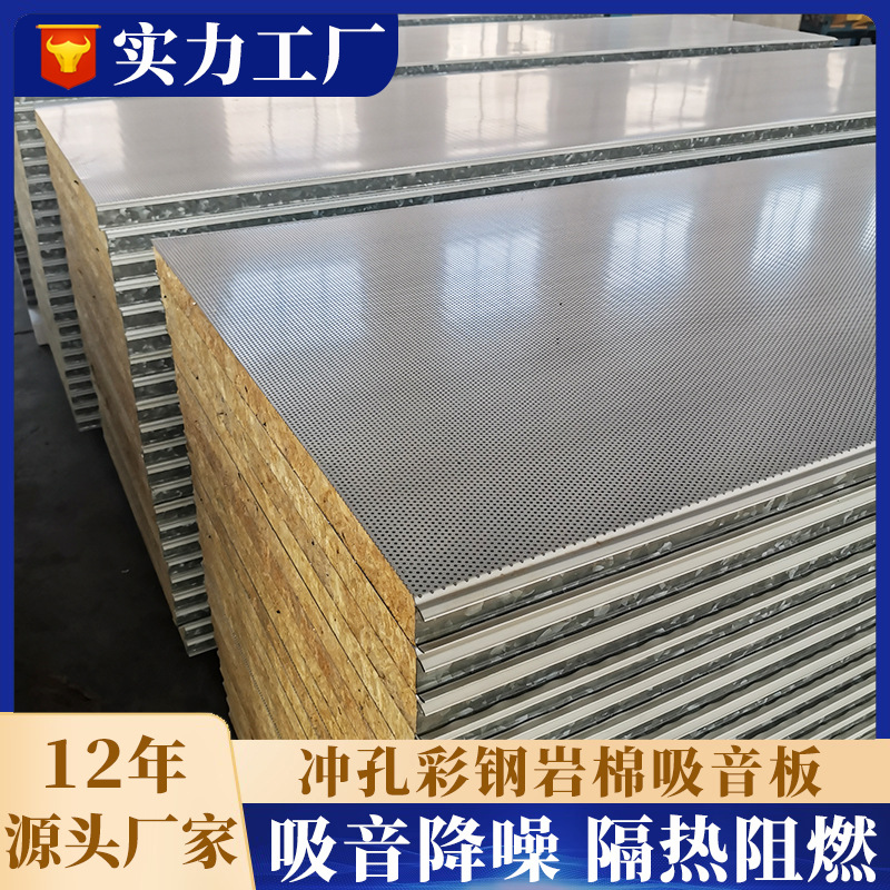 Langit-langit menyerap suara papan wol batu baja warna satu sisi meninju ruang tanaman atap dinding menyerap suara batu wol pukulan papan sandwich