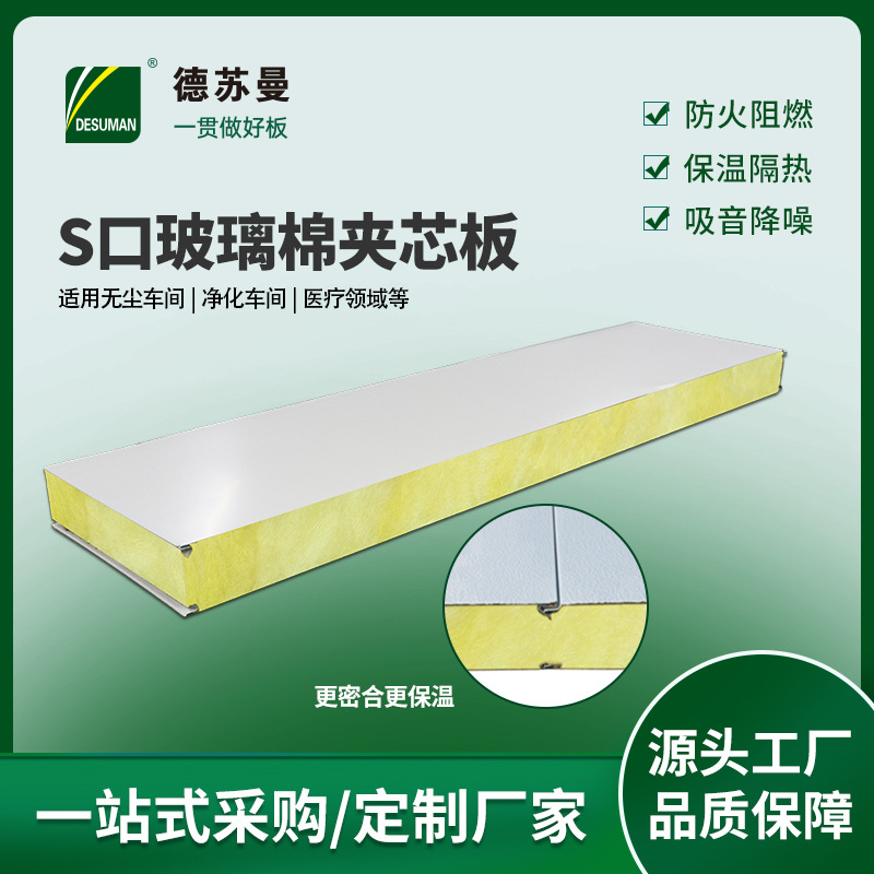 S-mouth kaca wol papan komposit warna papan sandwich baja 50mm kaca tebal wol batu papan sandwich isolasi Dinding