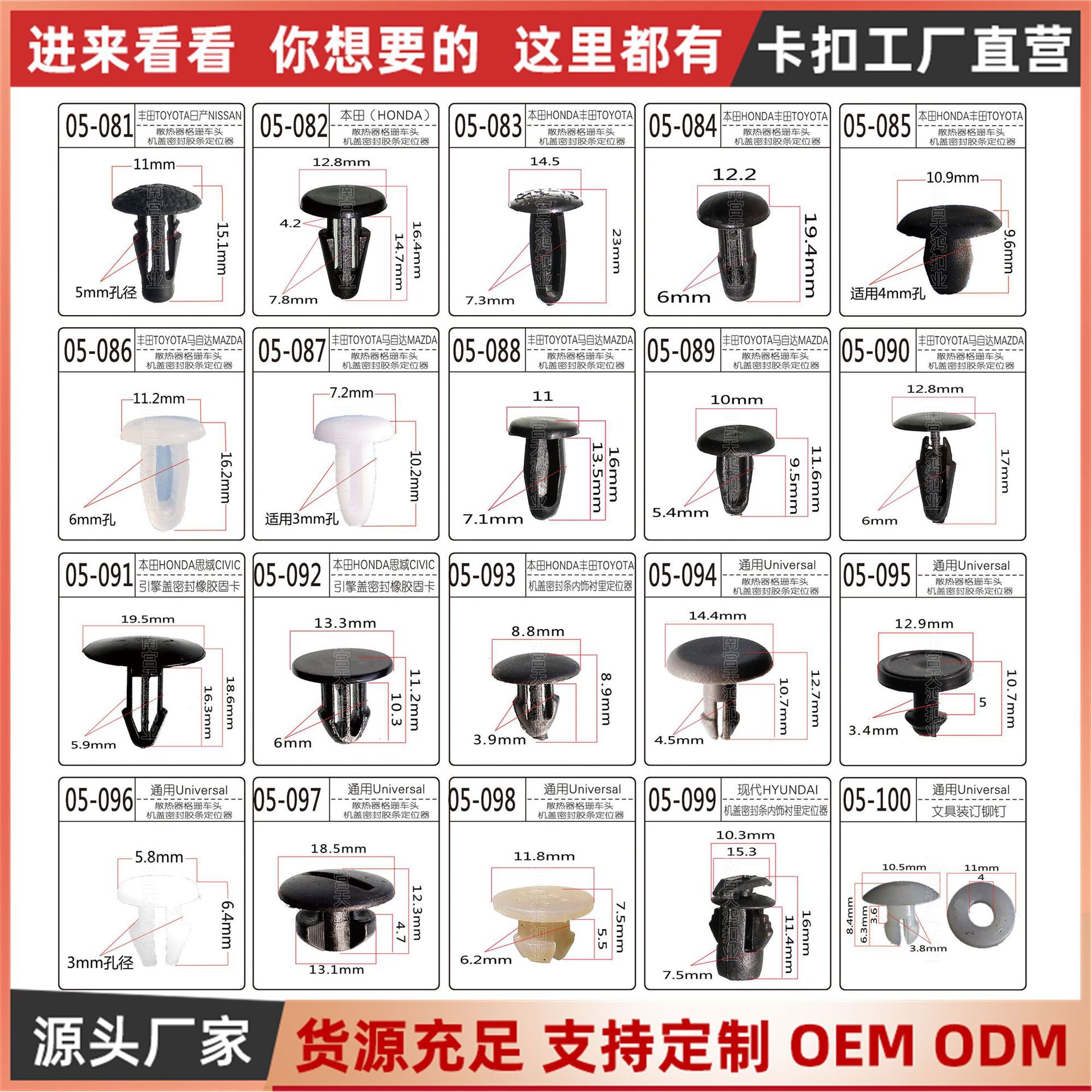 Cocok untuk mesin mobil Honda, insulasi panas, gesper katun, kap mesin, isolasi suara, klip katun 91501-STK-003