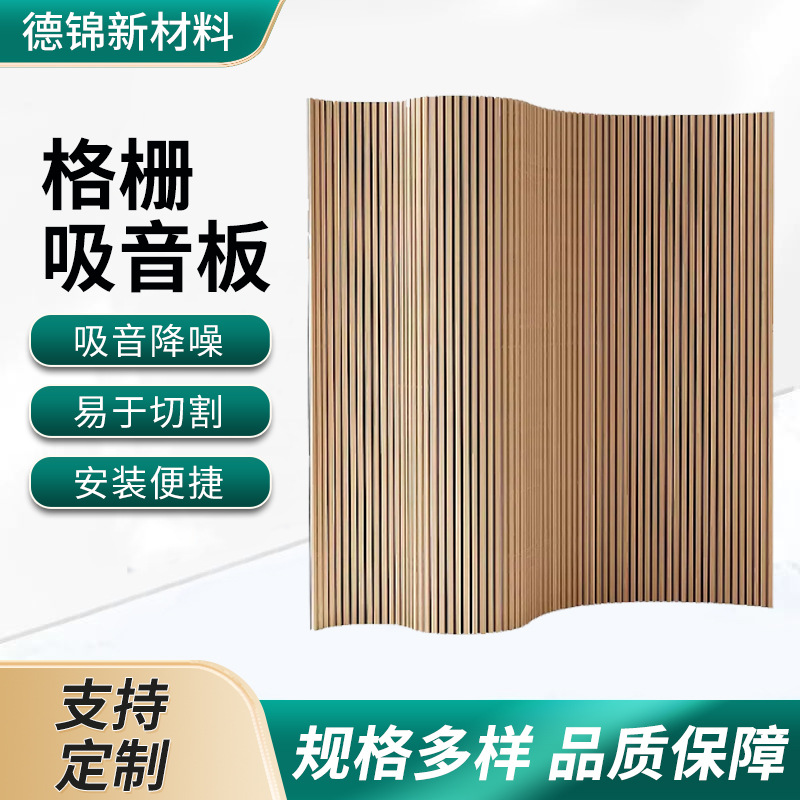 Kisi kayu serat poliester dekorasi dinding ruang konferensi dekorasi dinding cekung kedap suara kisi kulit kayu latar belakang dinding