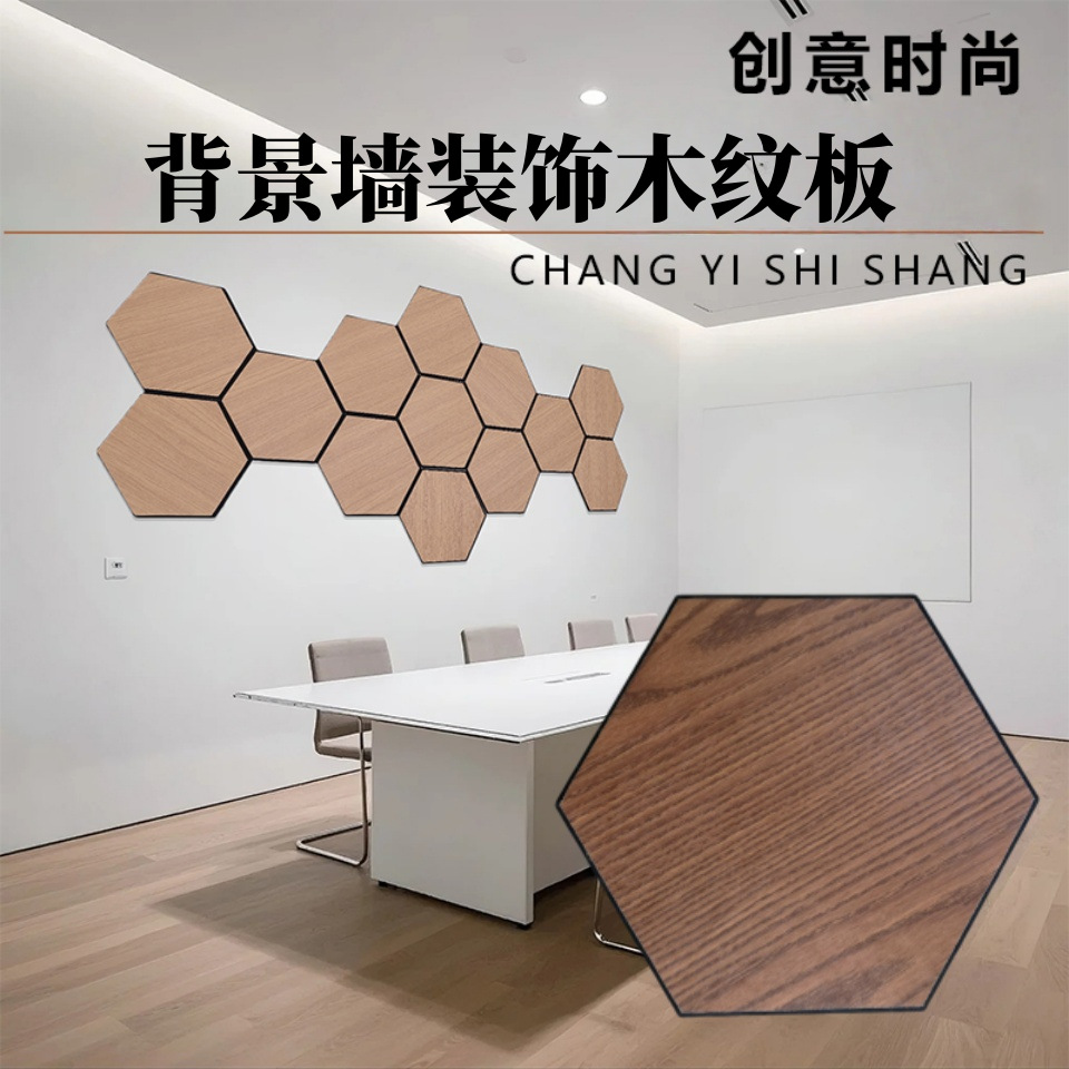 Papan Dinding Dekoratif Papan Dinding Tiga Dimensi Tempelan Pola Kayu untuk Ruang Kantor Kamar Tidur Tipe Hexagon Papan Dinding Serat Polyester Tiga Dimensi